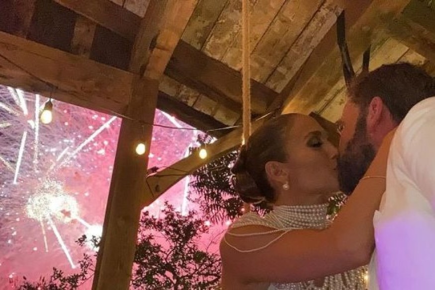 "One year ago today..." the Maid in Manhattan star wrote alongside a photo of the pair grinning on their wedding day and a second snap of them sharing a kiss in front of a firework show.
