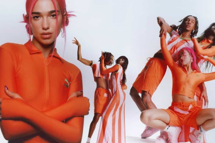 Shades of pink, purple and orange shape the color palette of the collection, which includes clothing, footwear and accessories, while Dua Lipa herself appears in the campaign with a new pink hairstyle to match the color......
